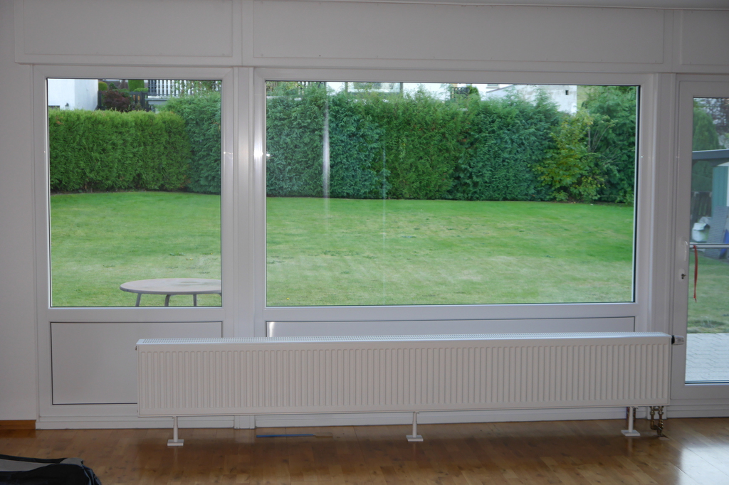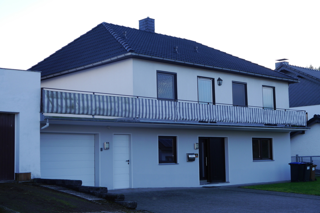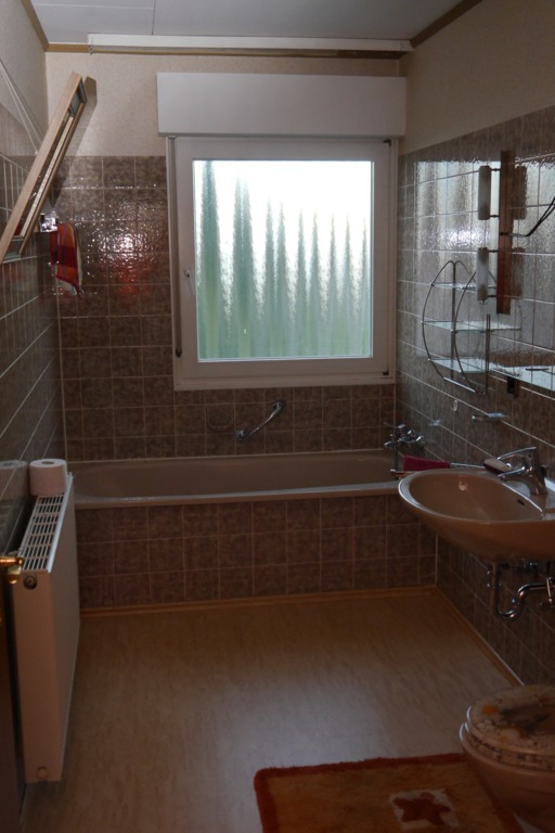 Eine elektr. betriebene Außenmarkise. 2 Schlafzimmer und Abstellraum. 3 Zimmer, Bad, Heizungsraum. Ausgang (mit Hundeklappe) zum Garten und Garage.