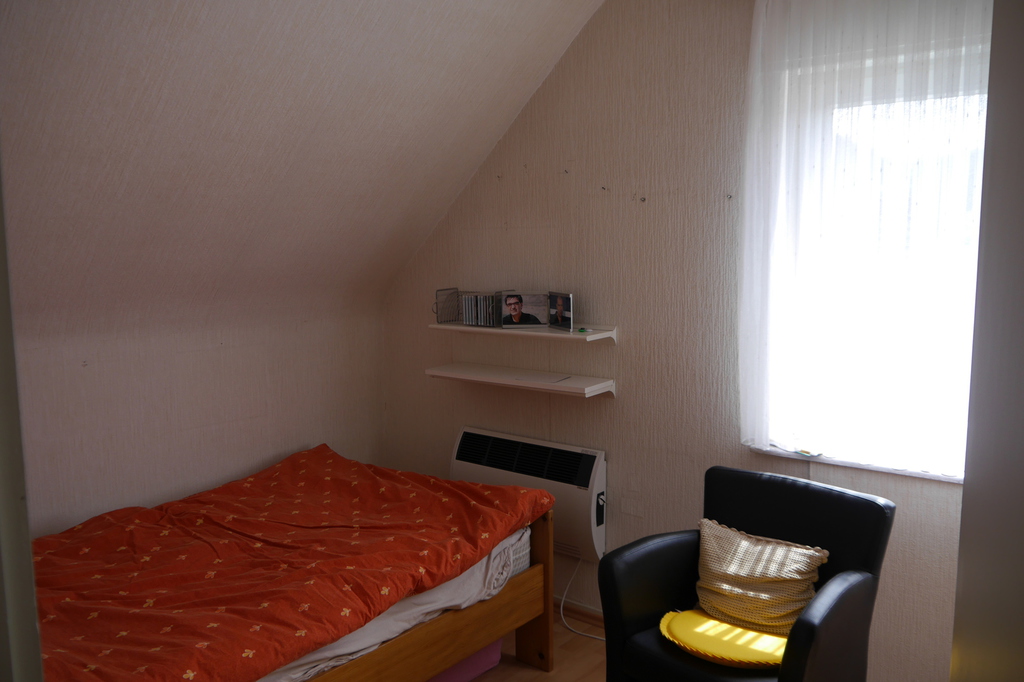 Tonziegeln. Die Fenster, Doppelverglasung, bestehen aus Kunststoff, weiß, die überwiegend mit elektrischen Rollladen ausgestattet sind. Beheizt wird das Haus über Erdgas anhand einer