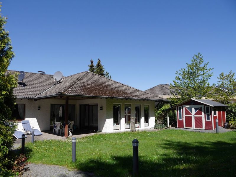 Das in 1985 erbaute Wohnhaus, ist versehen mit einem Walmdach (Eindeckung in Frankfurter Pfannen); der Außenputz ist ein Dreilagenputz, definiert als grober Kratzputz. Die Fenster sind überwiegend in Holz (doppelisoliert) gehalten. Die Fußböden sind in in Holzparkett ausgelegt.
