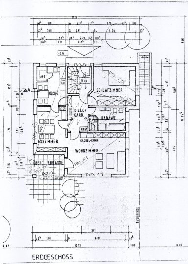 ca. 89 m² Diele / Garderobe, Küche mit Abstellraum, Esszimmer, Wohnzimmer mit Kachelofen, Schlafzimmer mit TV-Anschluss, Bad mit Dusche, Wanne und Bidet, Gäste WC, überdachte Terrasse |