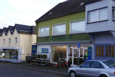 Das sich im EG befindliche Ladenlokal mit einer Gesamtfläche von 490 m² wurde seit Jahren als Lebensmittelladen, später als Schleckerfiliale und zurzeit als Blumenhaus geführt und ist momentan vermietet. Die ebenerdige Fläche mit einer straßenseitigen Schaufensterfront bietet sich als Einzelhandelsfläche (Verkaufsladen und großem Lager-/Vorratsraum, wie auch immer), Physiotherapie, Tierarzt, an. Im OG des Hauses befinden sich weitere große Nutzungsmöglichkeiten mit einer Fläche von 237m², welche auch zurzeit vermietet ist. Im OG befindet sich straßenseitig eine 140 m² Wohnung, zurzeit ungenutzt. Die Unterkellerung des Hauses beträgt 165 m², beinhaltet den Heizungsraum mit Öltanks, sowie weitere Stellfläche. Ein Aufzug befindet sich ebenfalls im Haus, zurzeit nicht in Betrieb. Eine gegenüberliegende Parkfläche mit 253 m² gehört ebenfalls zum Haus; die Parkplätze sind zum Teil vermietet. Mieteinnahmen ohne Wohnung 10.020 € p.a.